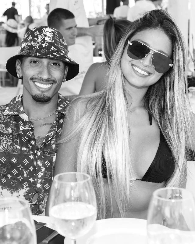 7月15日,巴西前锋拉菲尼亚正式签约巴萨。随他一起到巴塞罗那的,还有他的妻子纳塔莉娅·罗德里戈。纳塔莉娅昵称塔娅,她跟拉菲尼亚2021年确认恋情,今年2月8日结的婚。不过,两人算是青梅竹马,认识已经有十年之久。